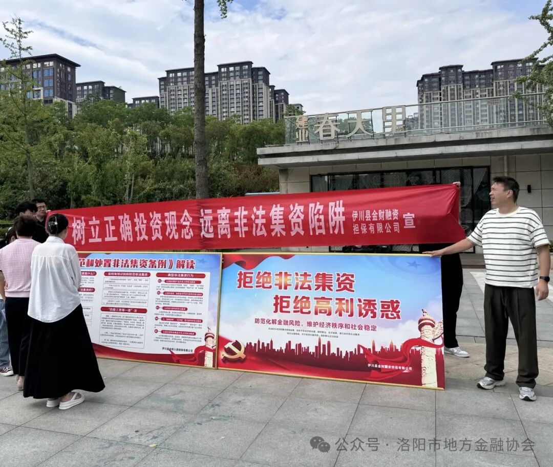 2024年6月是全国第12个“防范非法集资宣传月”,为加大防范非法集资知识宣传力度,切实增强周边群众防诈防风险意识,引导群众自觉远离、抵制非法集资。伊川县金财融资担保有限公司组织开展了以“守住钱袋子•护好幸福家”为主题的防范非法集资系列活动。