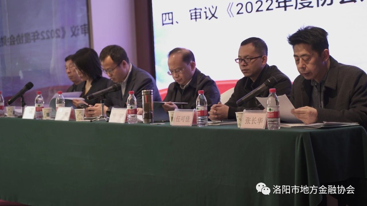 协会轮值会长王云鹏、秘书长张长华分别作了《2022年度协会理事会工作报告》、《2022年度财务收支情况报告》,分别经大会审议通过。常务副会长吴艳辉宣读《关于表彰2022年度全市地方金融行业先进单位和先进个人的决定》、协会监事长高景化宣读洛阳市地方金融协会《关于表彰2022年度优秀课题成果的决定》。